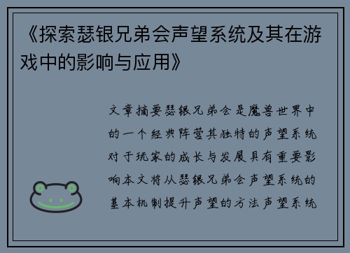 血魔护甲是一个在战斗中非常特殊的防御机制,它的力量与防御机制不仅仅依赖于传统的物理防御手段,还融合了血魔的特殊力量,形成了一种独特的战斗力加成。这种护甲系统通过吸收伤害并转化为血液能量,为战士提供更强的生存能力,并在一定程度上反弹伤害,从而强化战斗中的进攻能力。本文将从四个方面详细分析血魔护甲的力量...